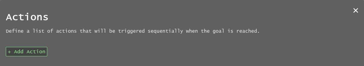 When a route is set up, define actions for each goal by holding down the mouse or finger on the goal until the Actions menu appears.