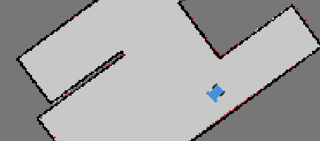 When the red dots are roughly aligned with the walls, release the robot and the system will attempt to localize it. As soon as the robot moves, it should snap to the map and confirm its position.