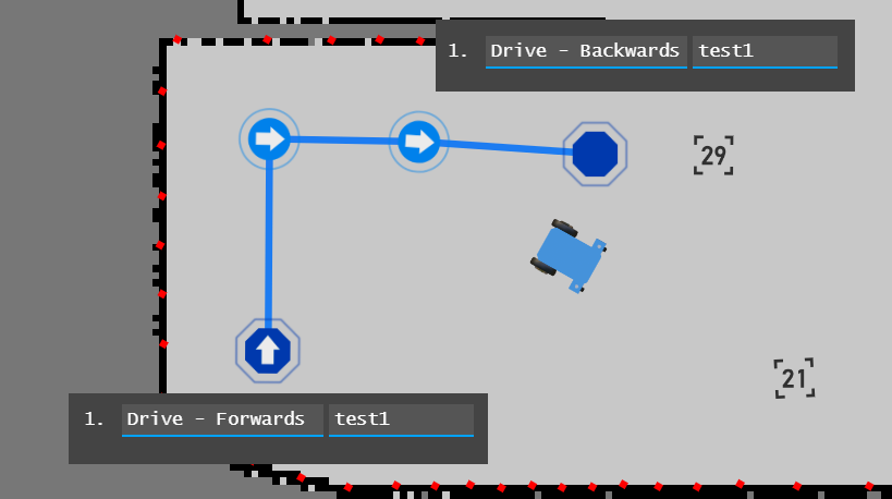 The robot will drive the route forward, then reverse back to the start, and continue forward again. Removing the “Forward” action creates a simple go-and-return behavior. Additional combinations are possible by linking drive commands to other routes, allowing multiple routes to be chained together.