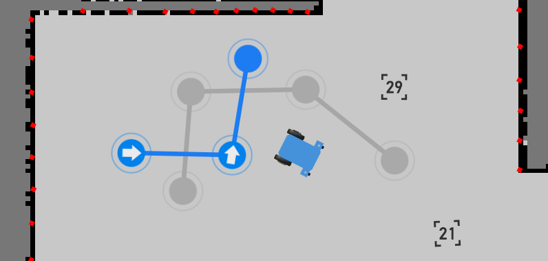 To give the system a good starting reference, drag and drop the robot so the red dots align with the black walls. After placement, an arrow appears indicating the forward direction.