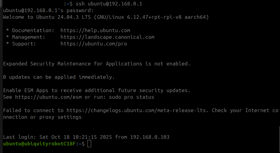 2. Enter the SSH password when prompted: ubuntu. Note that the password will not be visible while typing.